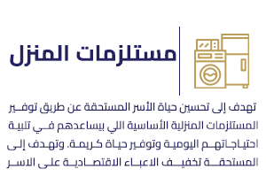 يهدف البرنــامـج إلى تحسين جودة الحياة من خلال توفير مستلزمات منزلية أساسية مثل الثلاجات والغسالات وغيرها . هذه المستلزمات تسهـل على الأسر إدارة حياتهـم اليومية وتحسين ظروف معيشتهم.